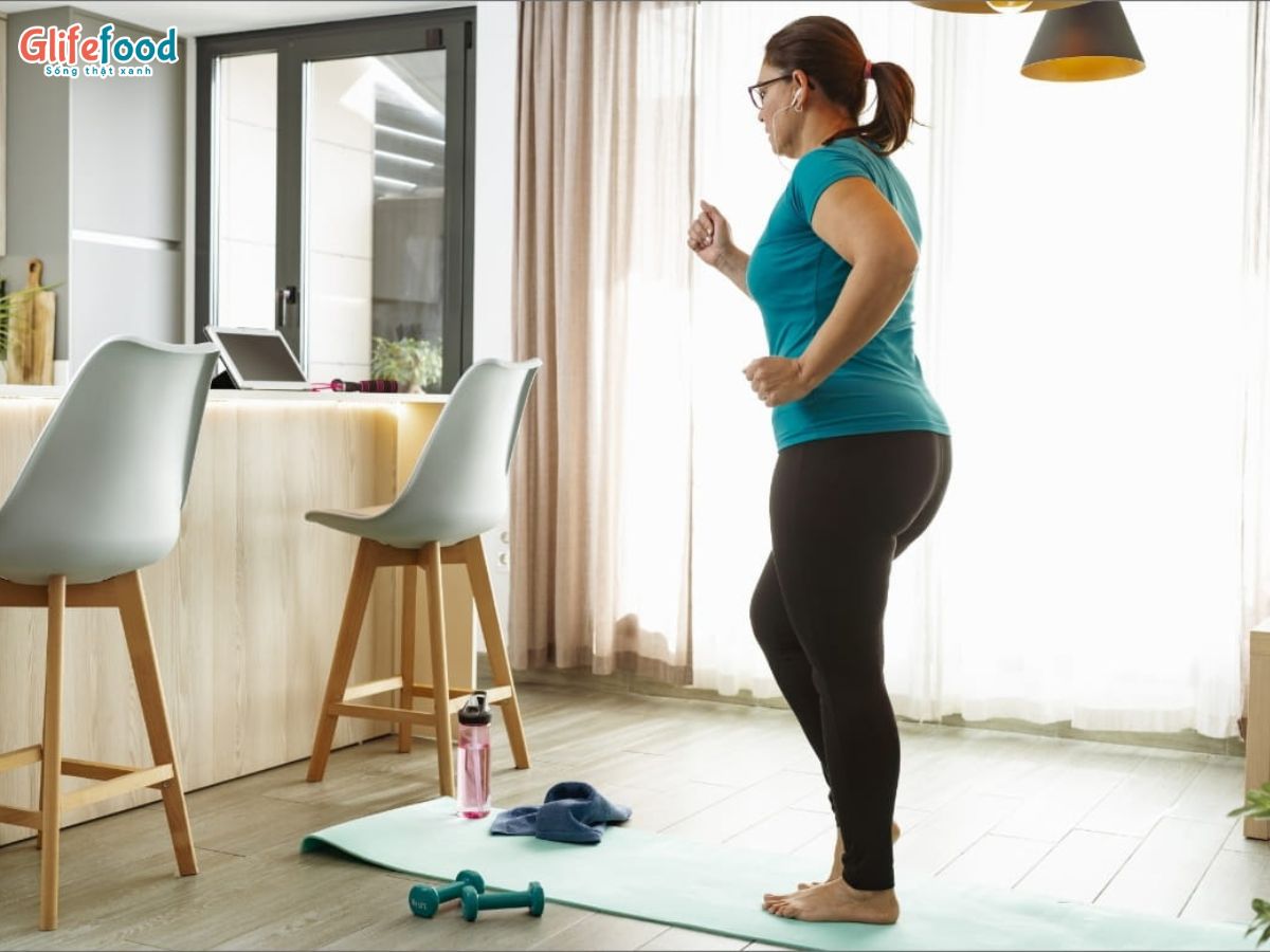 - Đi bộ nhanh tại chỗ hoặc quanh sân