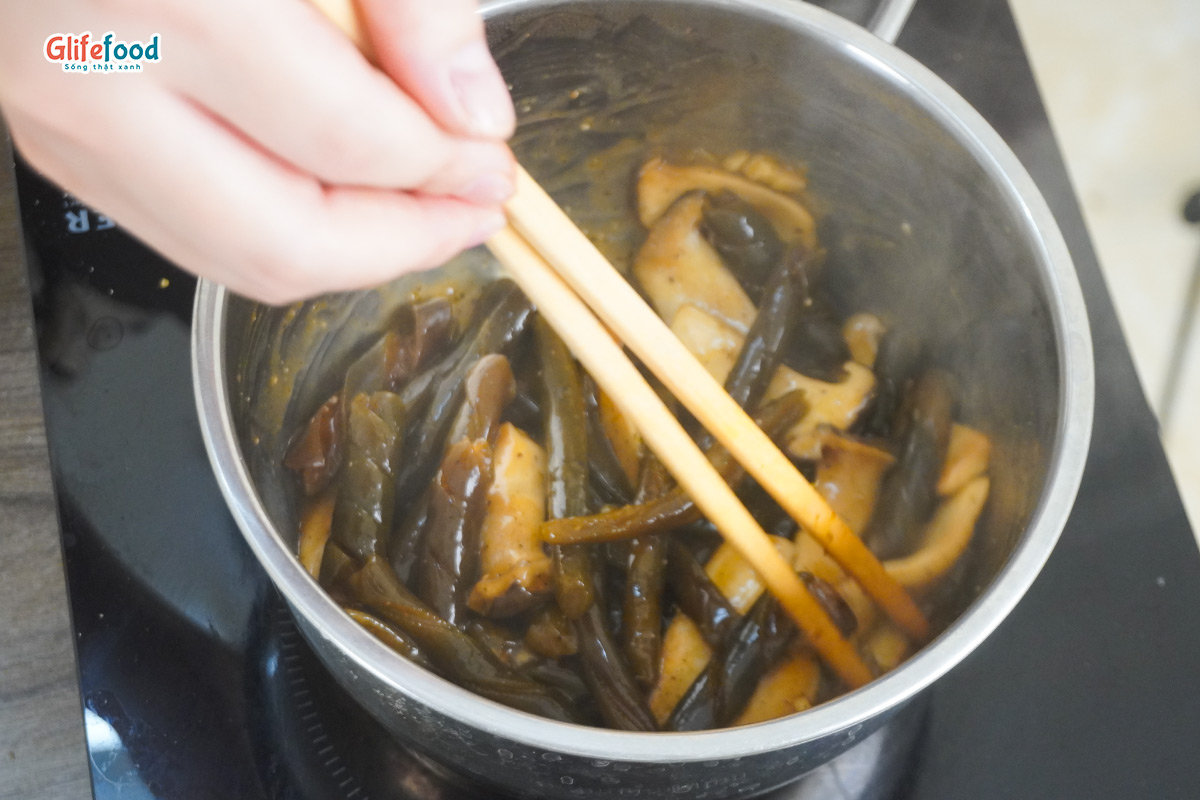 Xào chín tảo với nấm cùng sốt tiêu đen