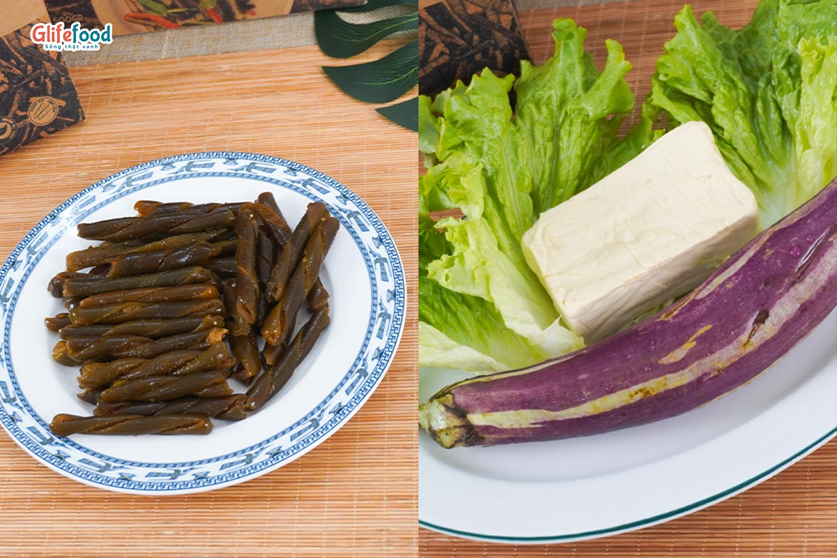 Nguyên liệu làm món Bánh tráng cuốn nhân cà tím và tảo biển Chile