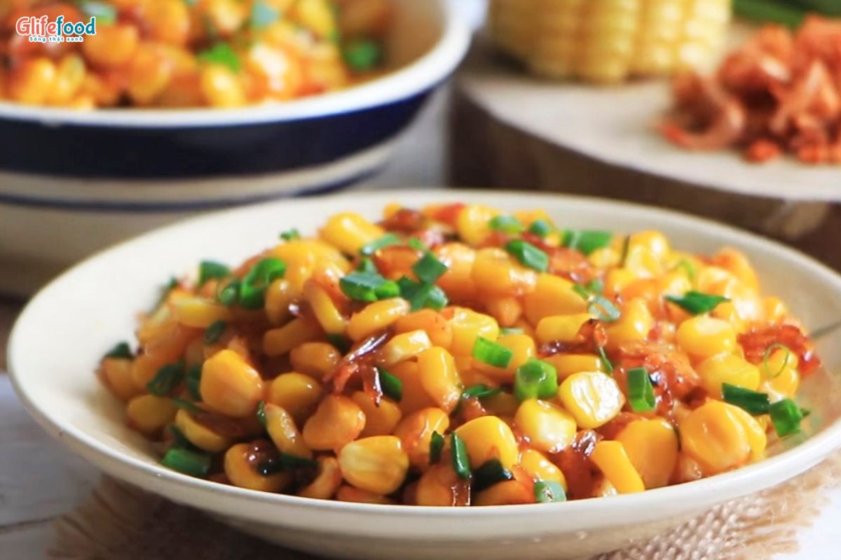 Bắp ngô: tách hạt rồi luộc trong 5 phút với chút muối