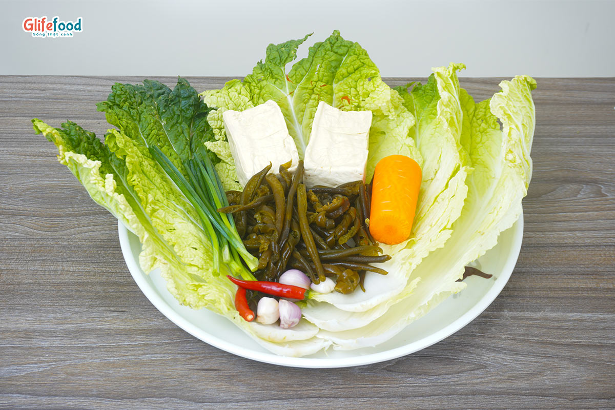Nguyên liệu làm món cải thảo cuộn tảo xoắn Chile