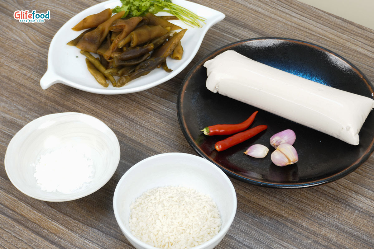 Nguyên liệu làm món Đậu non sốt tảo xoắn Chile
