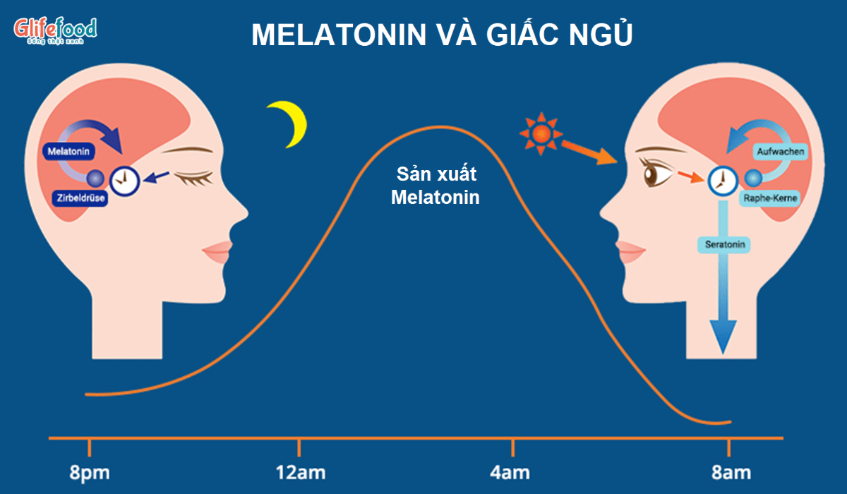 - Melatonin giúp kích hoạt cơ chế bắt đầu giấc ngủ