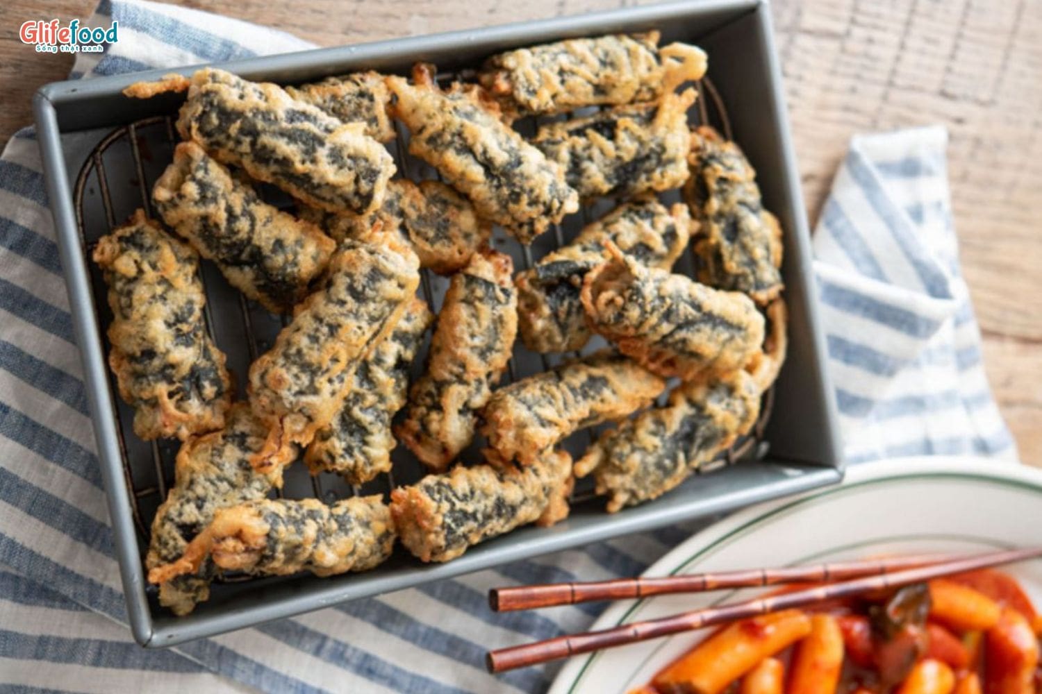 Tảo ống: ướp với chút muối và tiêu. Tiếp theo đem trộn đều với bột chiên giòn vừa pha. Sau đó mang chiên vàng đều.