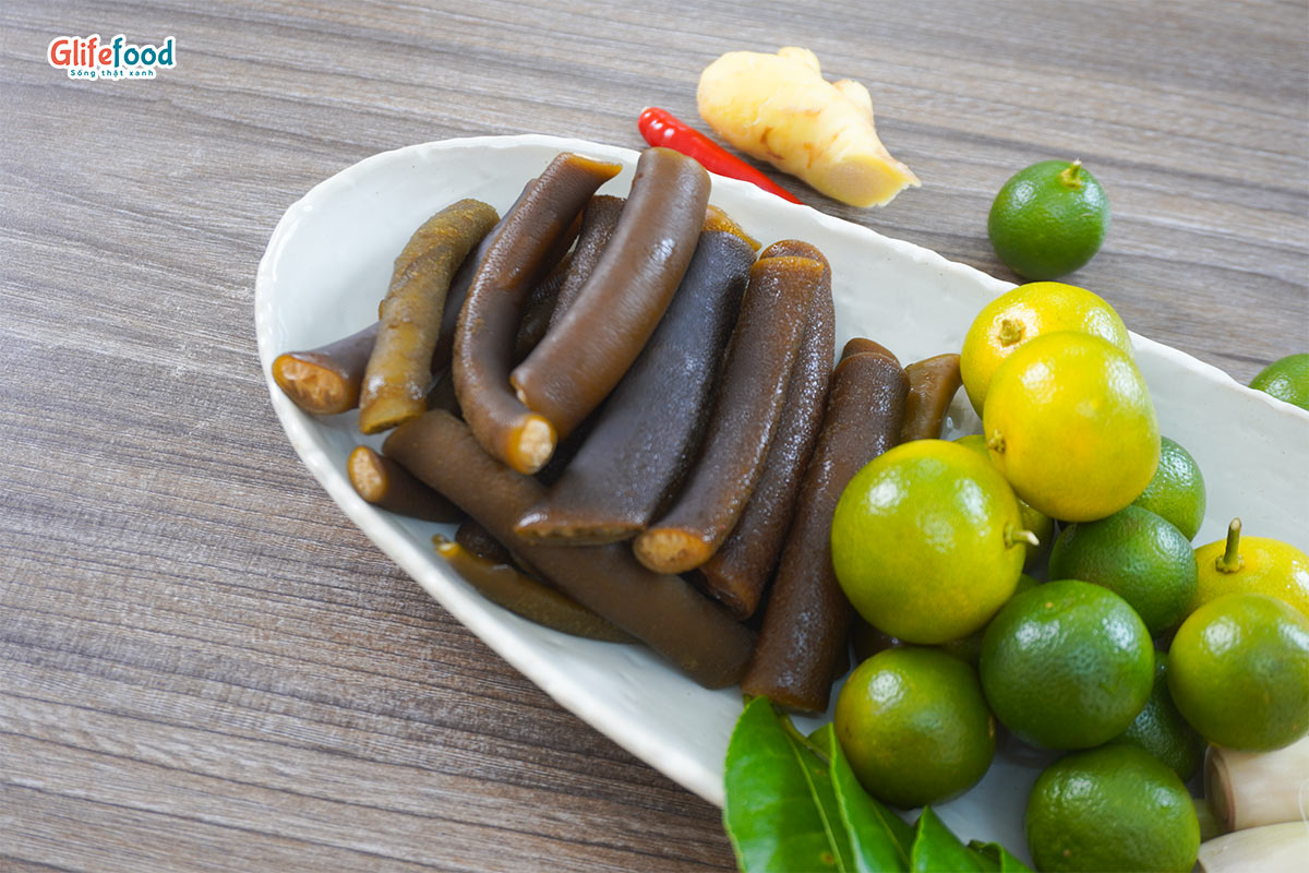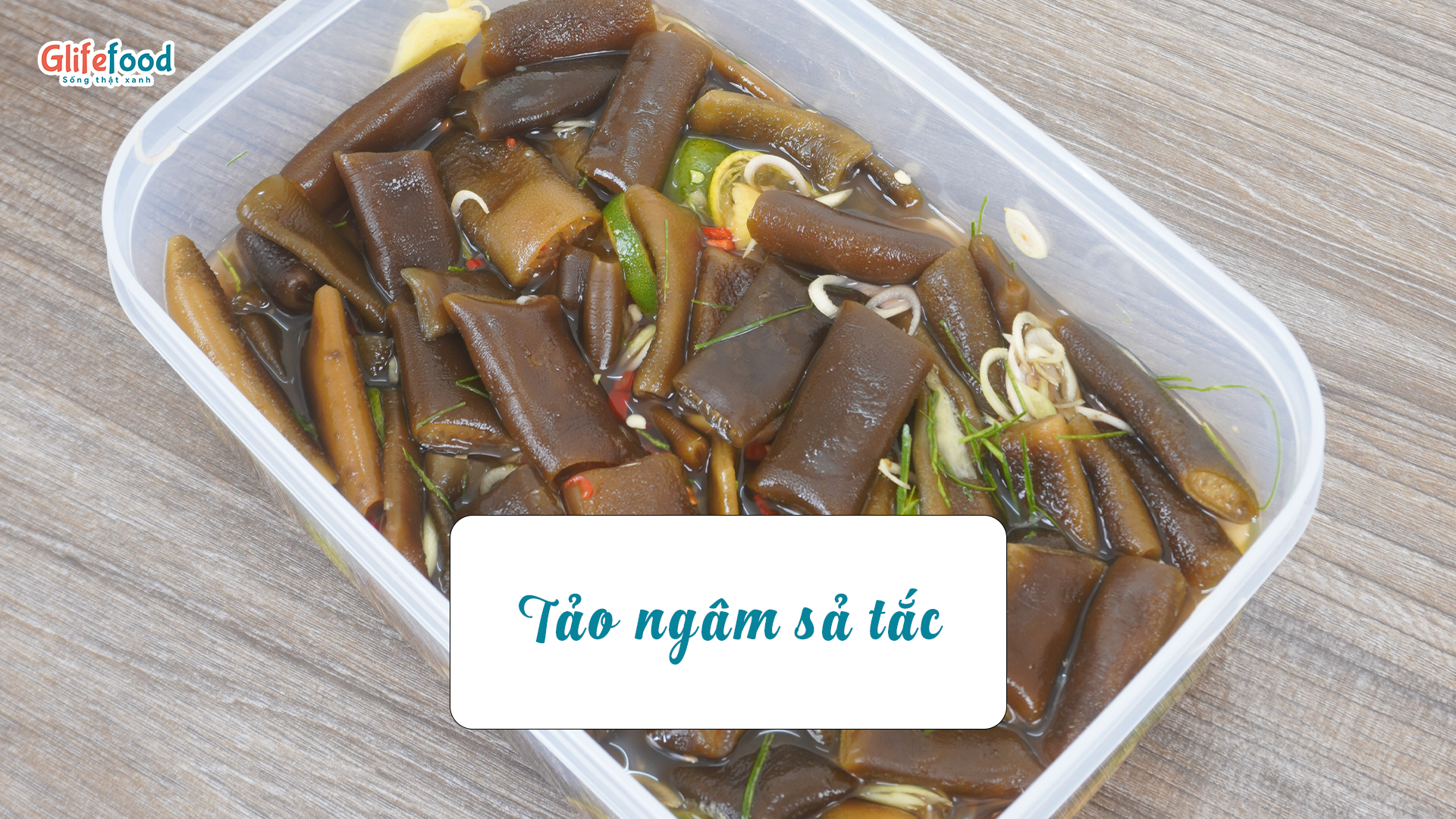 - Trộn tảo ống với nước sốt và sả, tắc, lá chanh. Để trong tủ lạnh khoảng 4 tiếng là ăn được.