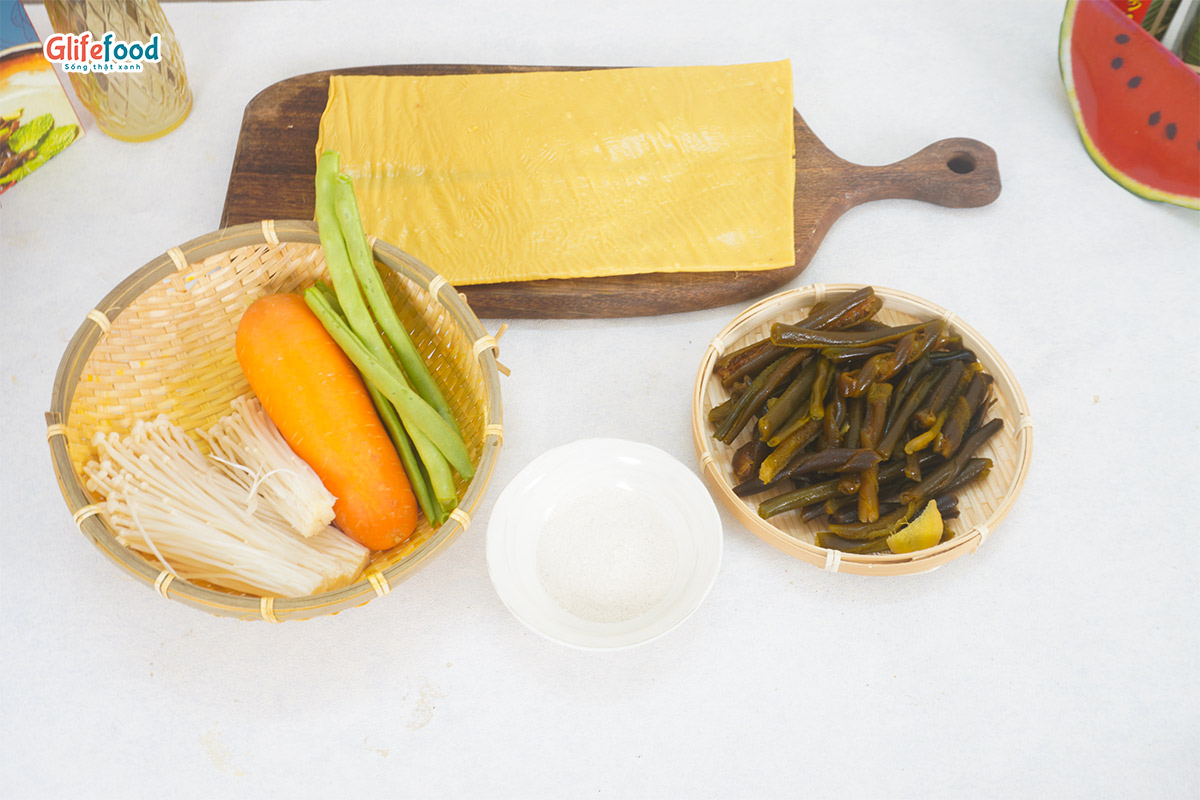 Cà rốt, đậu que, váng đậu, bột chiên giòn