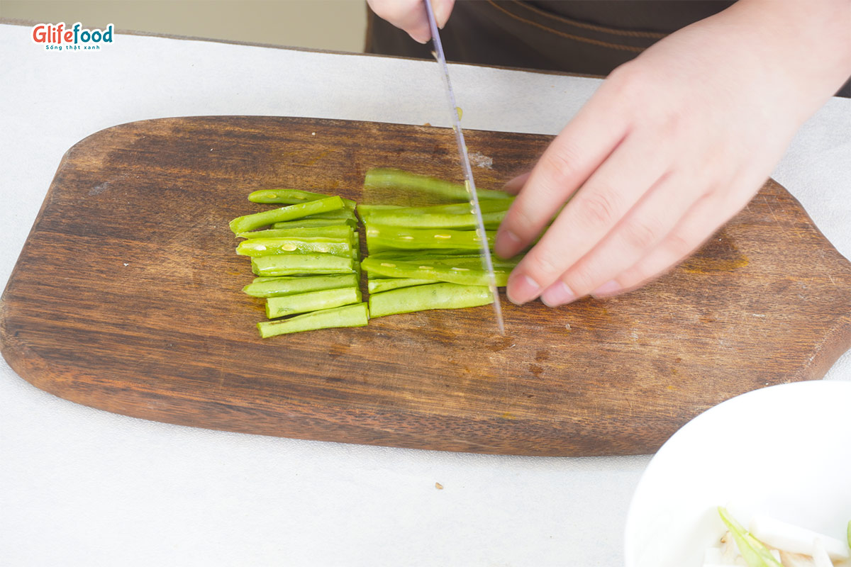 Cà rốt, đậu que: cắt khúc vừa ăn rồi trần sơ