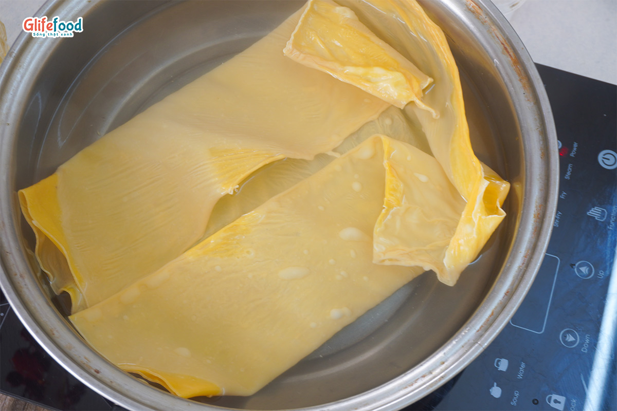 Váng đậu tươi: trần sơ với nước sôi cho mềm