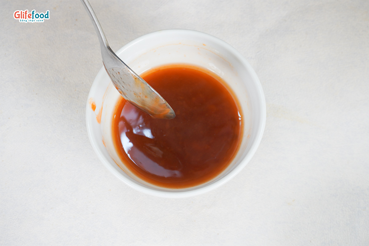 Sốt dầu hào: 2 muỗng canh dầu hào, 2 muỗng canh tương ớt, 1 muỗng canh mật ong và 50ml nước